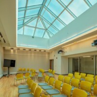 Public-facing department functions, a landscape architecture gallery, digital storytelling spaces, department offices, an auditorium, and heavily-used classroom spaces are located on the first floor. Classrooms and large student lounge spaces are situated on the secondary entry and basement floor. Faculty offices, community kitchenettes, corridor seating, and transparent huddle rooms are located on the second floor. The Landscape Architecture Studios along with terrace seating area coalesce on the third floor. Every floor is filled with ample collaborative spaces, like the terraced seating on the third floor outside the design studios. Research, design, and computer production spaces are located on the top sky-lit fourth floor.