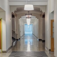 The renovation and expansion of Marshall Hall feature a dynamic array of spaces, including spacious classrooms, professional offices, and both formal and casual seating areas that encourage collaboration. Specialty program spaces are thoughtfully integrated, offering focused environments tailored for specific academic needs. Each floor is designed with unique surprises and inviting details that captivate and inspire. This project not only preserves the historic architecture of the original structure but also introduces modern elements such as clean lines, abundant natural light, and vibrant color schemes, creating a contemporary academic hub that enhances the campus experience.