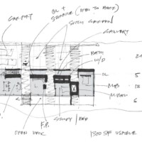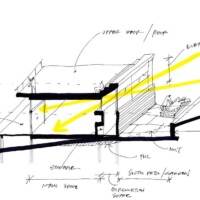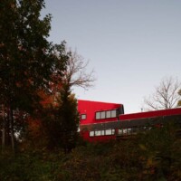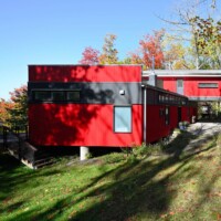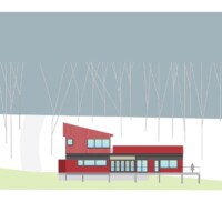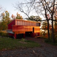 The design of the Barn House on Owasco Lake design was driven by its site condition (steep slope overlooking a deep glacial lake), the resulting glorious views (due west) and a micro-climate (a mini lake-effect with driven rains from northwest), client lifestyle (a professional couple that is considering retirement, empty nesters yet with extended family that visit occasionally), an appreciation for a minimal environmental impact, and a limited budget.