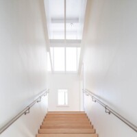 The design scheme is based on a typical local agrarian barn that uses the ground slope to access two levels separately, thus allowing for maximum separation of functions (in case of barn: animals and storage – and in this case: owners and their guests), making the house simultaneously very small and very spacious. The sectional split enabled effective insulation of the two levels of the house from from each other so that only the area actually inhabited by the two clients could be heated or cooled; when the extended family and grandchildren arrive, both levels can connect again.